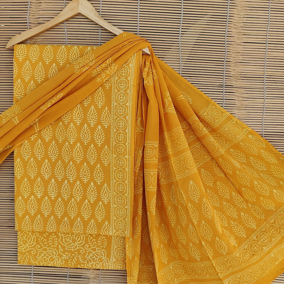 Hand Block Printed Cotton Suits With Malmal Dupatta